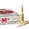 This round is crowned by a 140 grain ELD Match projectile. The bullet’s Heat Shield tip will not warp when heated by air friction, so you can count on it to always maintain its shape and perfect symmetry. Its ballistic coefficient is even further heightened by its boat tail design, secant ogive profile, and precisely concentric AMP jacket. Because it performs remarkably well at all practical ranges, this round’s bullet makes it an extremely effective choice no matter what you’re shooting for.