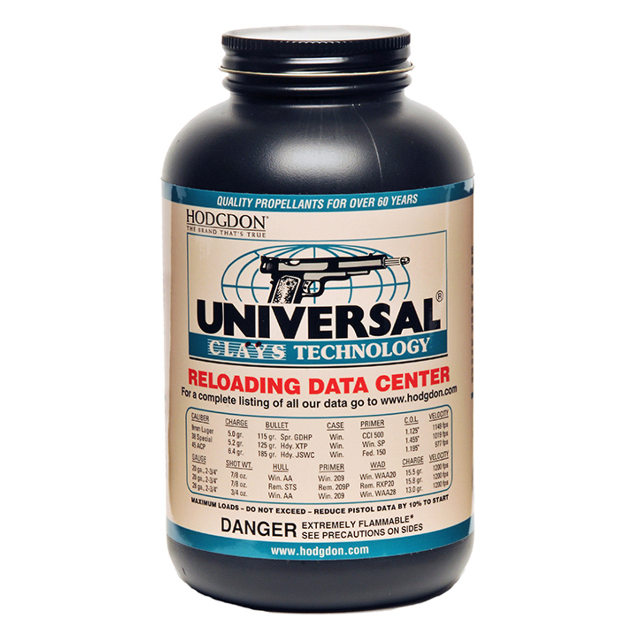Hodgdon Universal Clays Powder performs well in all calibers, from the 25 ACP to the 44 magnum, and from 28 gauge to 12 gauge. Clean burning and consistency are characteristics shared by all Hodgdon gunpowders.